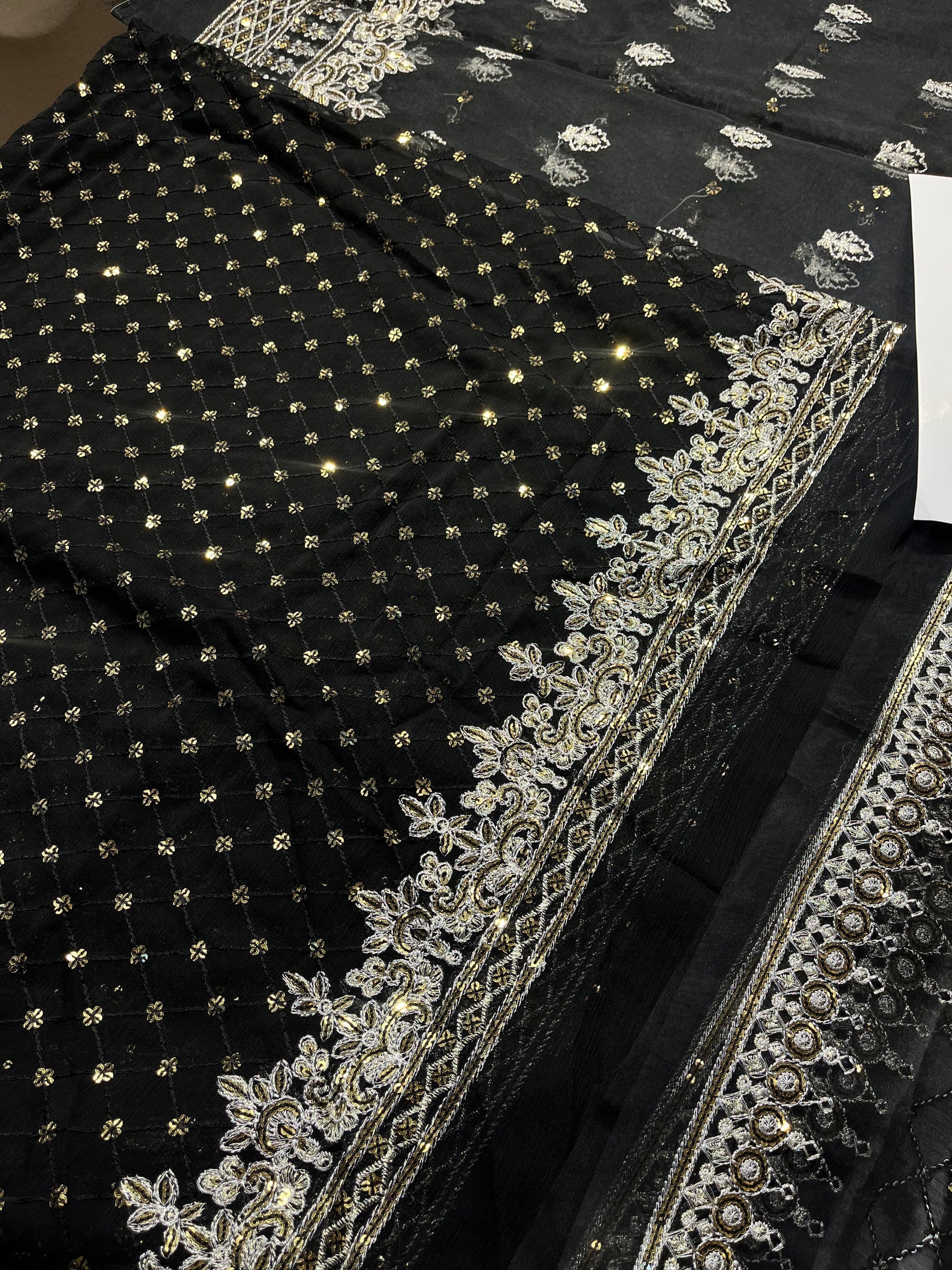 - 2.5 meters embroidered border for front & back chaak on chiffon