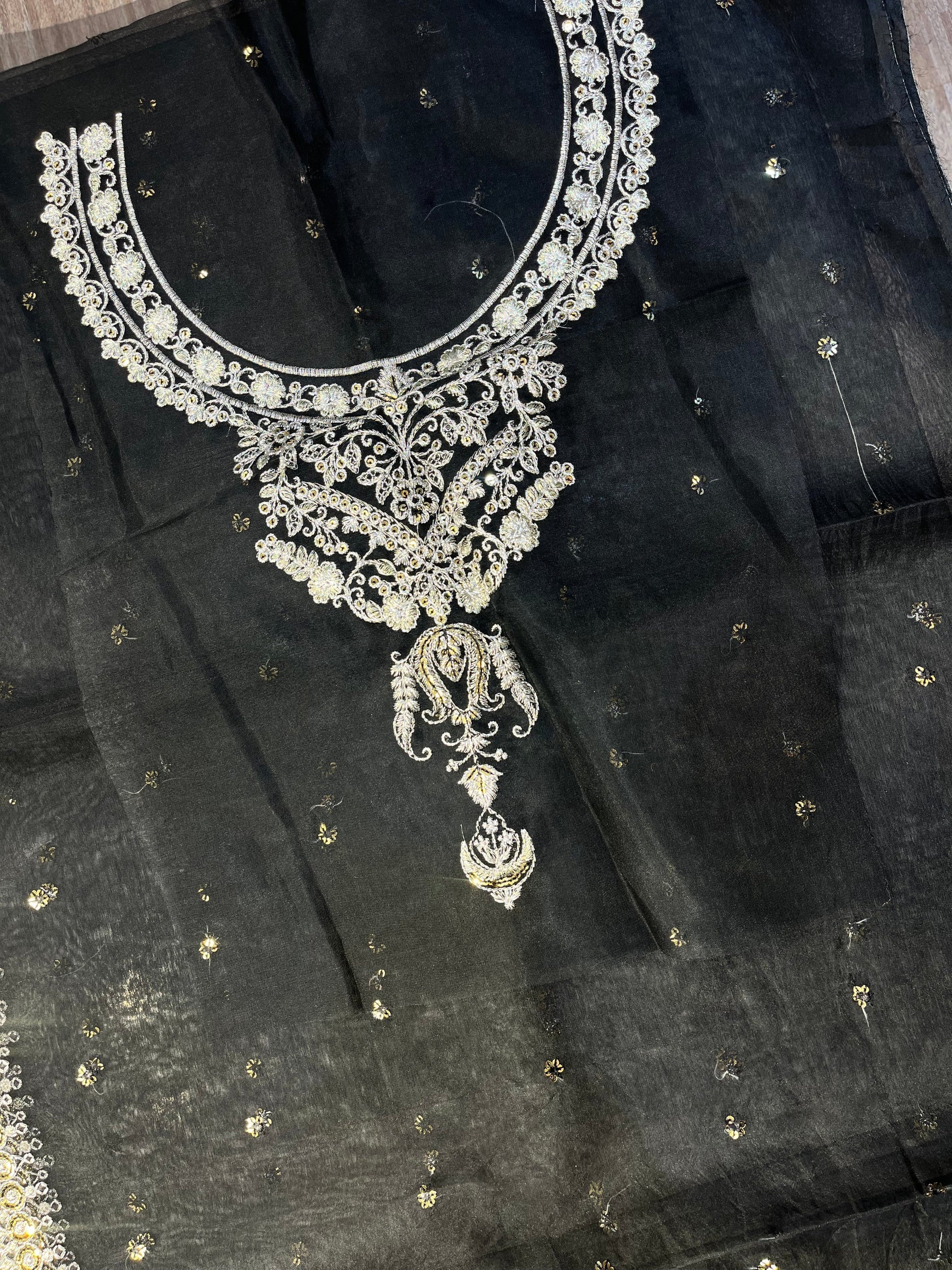 - Embroidered neckline for back on chiffon