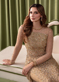 Prepare to dazzle in sheer elegance with this breathtaking nude net long shirt, a masterpiece of refined sophistication. Every meticulous stitch adorns its embroidered base, elevating your style to new heights with exquisite detail. Delicate embellishments and scatter spray sequins add a captivating sparkle, while the see-through sleeves and neckline lend a tantalizing allure. Paired effortlessly with Korean raw silk trousers in a matching shade, this ensemble exudes effortless chic, with side seam tissue detailing adding a touch of texture and dimension. Get ready to command attention and turn heads wherever you go with this stunning ensemble that effortlessly blends understated glamour with refined elegance.
