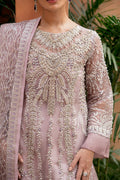 In a celebration of femininity and grace, we present a breathtaking outfit Melissa in the softest shade of lavender, adorned with exquisite handwork embellishments that evoke an air of enchanting allure. Meticulously crafted with an artistic touch, this stunning ensemble showcases the opulence of kora, dabka, naqshi, sequins, pearls, and Swarovski crystals, creating a mesmerizing symphony of elegance and charm.